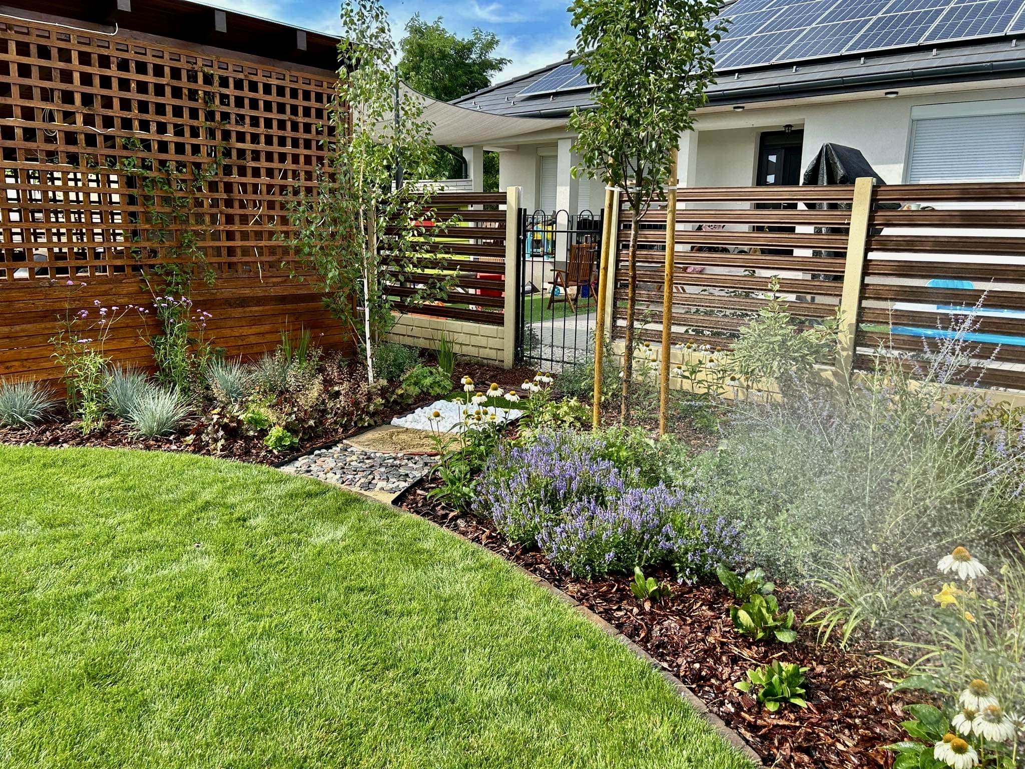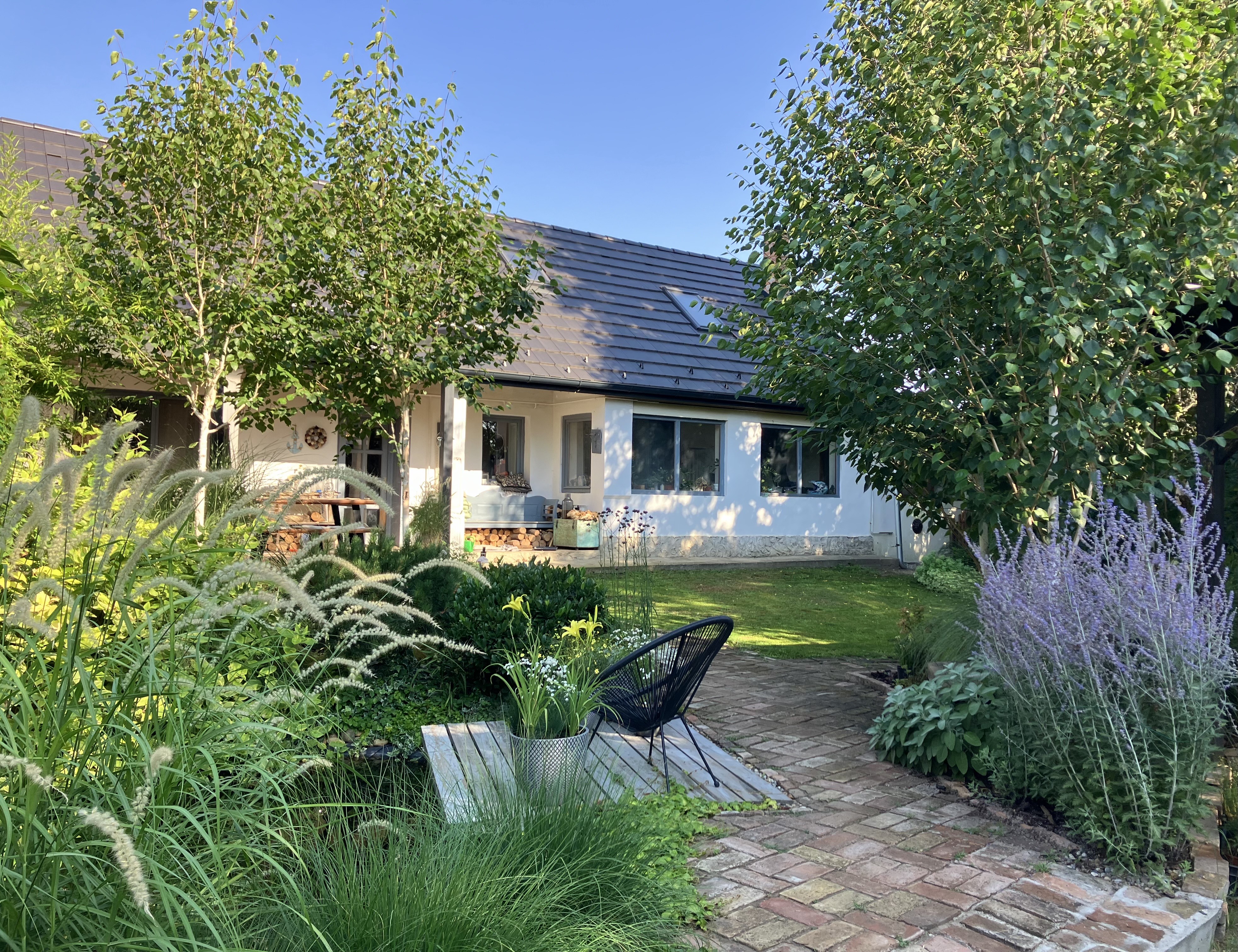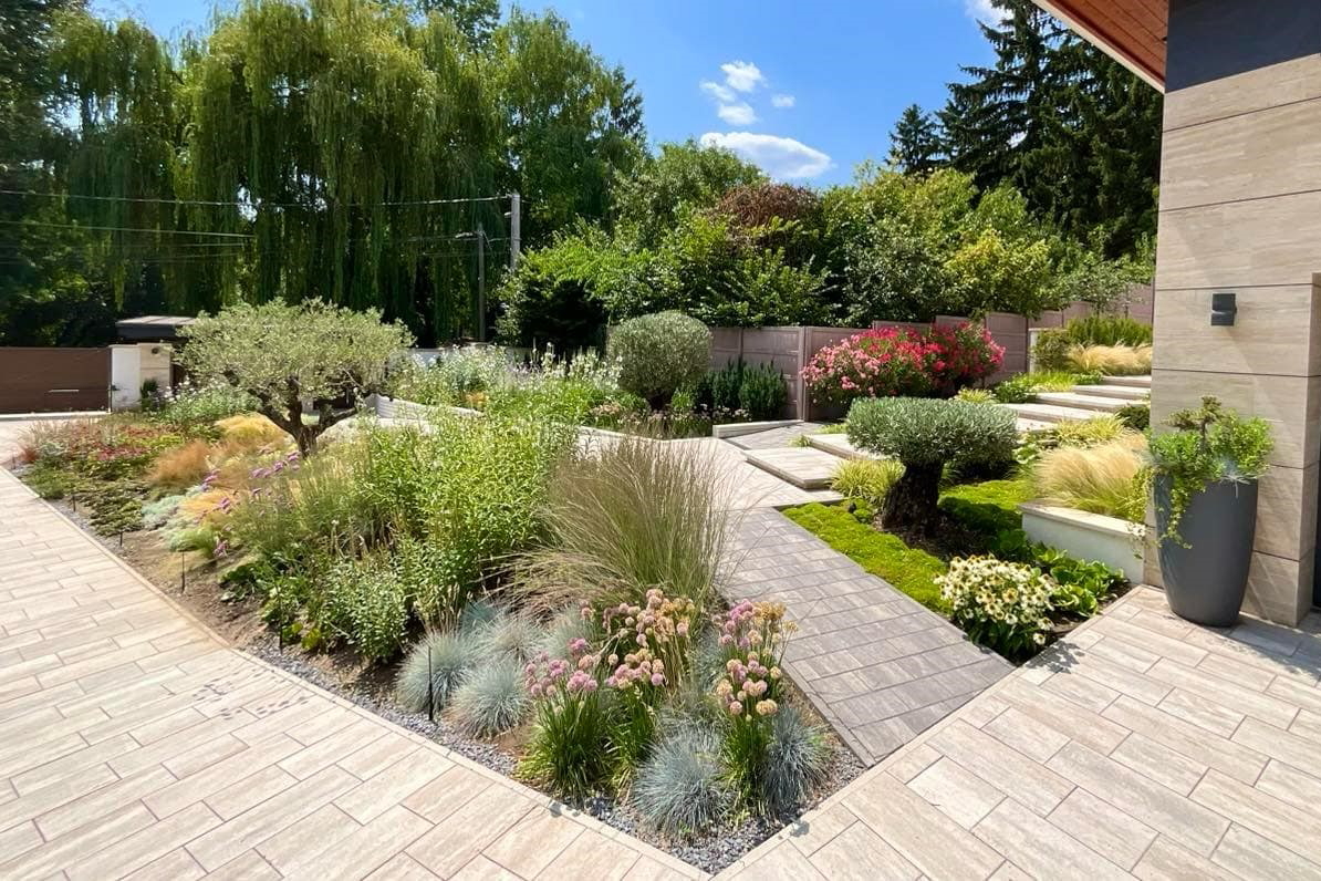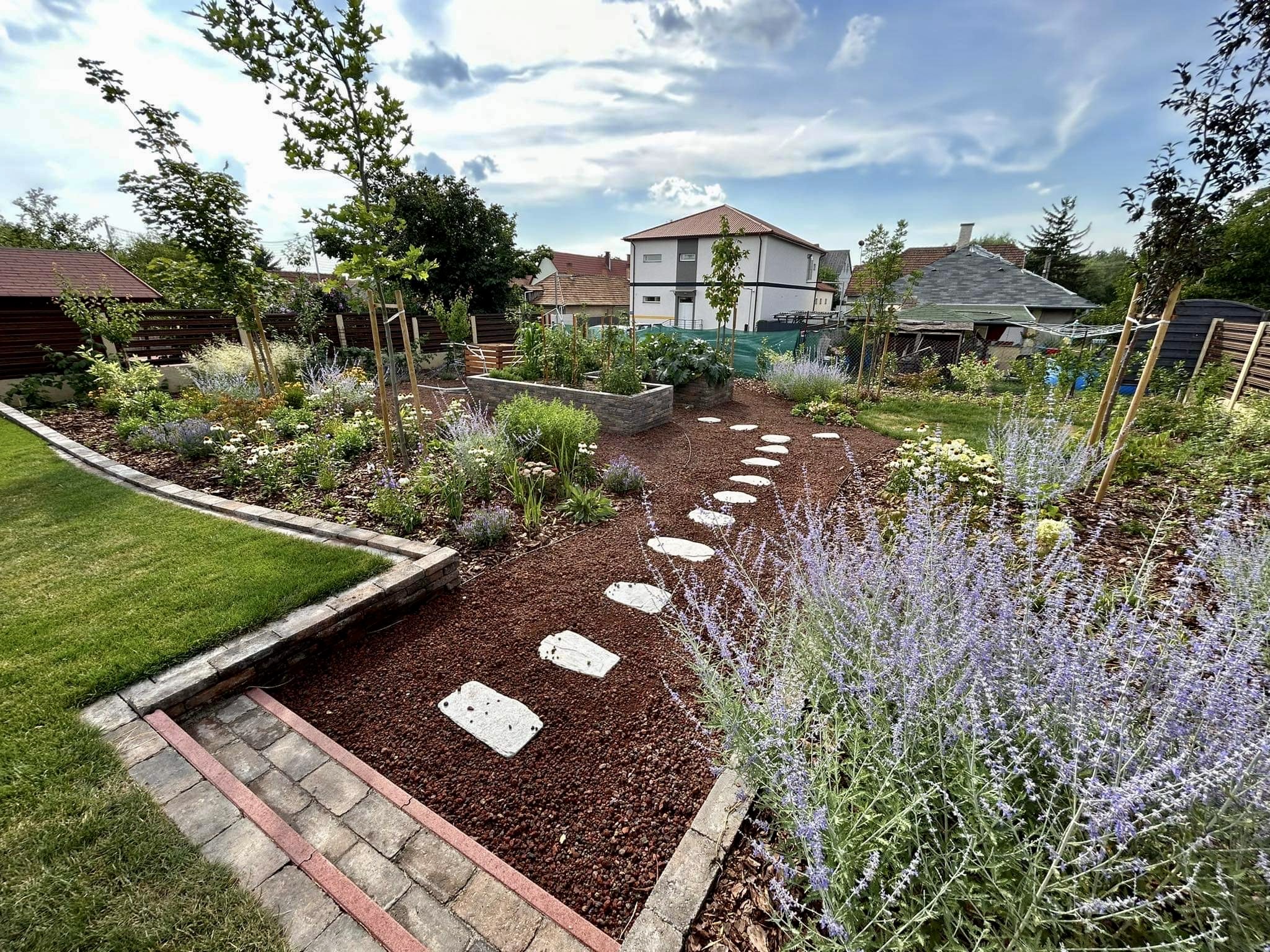 Fák, cserjék és évelők változatos, kreatív, térbeli elhelyezésével hozzuk létre a harmonikus, modern, élhető kertet. Alapul véve az őshonos növényzetet, de alkalmazkodva a klímaváltozás hatásaihoz.